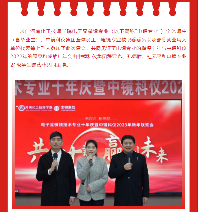 【共濟十載,贏創未來】祝賀電子顯微鏡技術專業十年慶暨中鏡科儀2023年新年聯歡會成功舉辦!