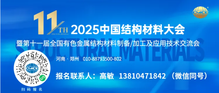 【行業會議】2025中國結構材料大會暨第十一屆全國有色金屬結構材料制備/加工及應用技術交流會