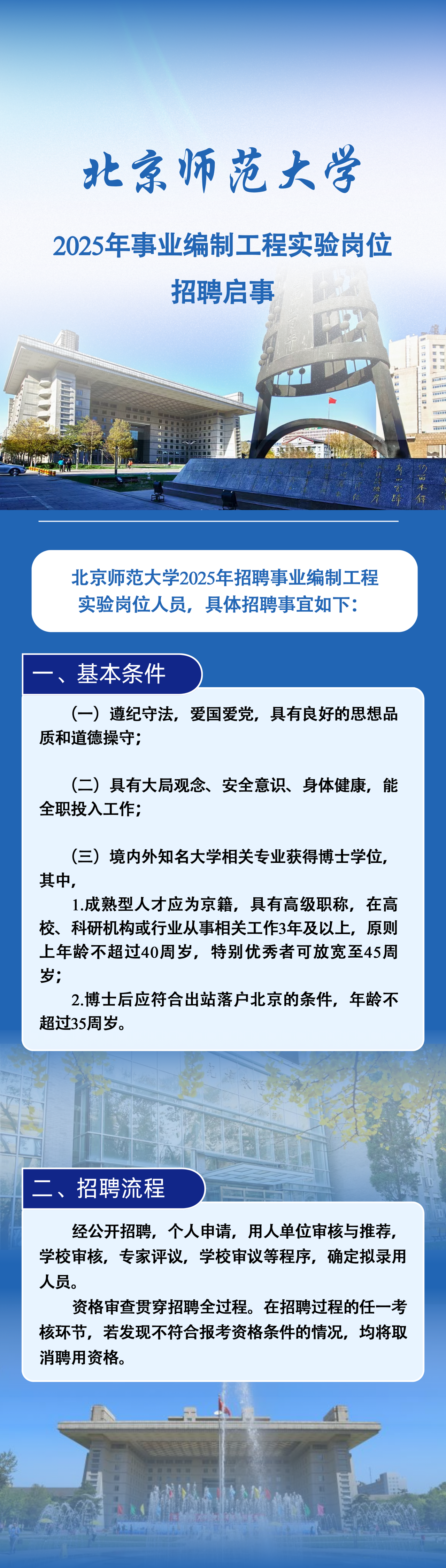 【行業招聘】北京師范大學2025年事業編制工程實驗崗位招聘啟事