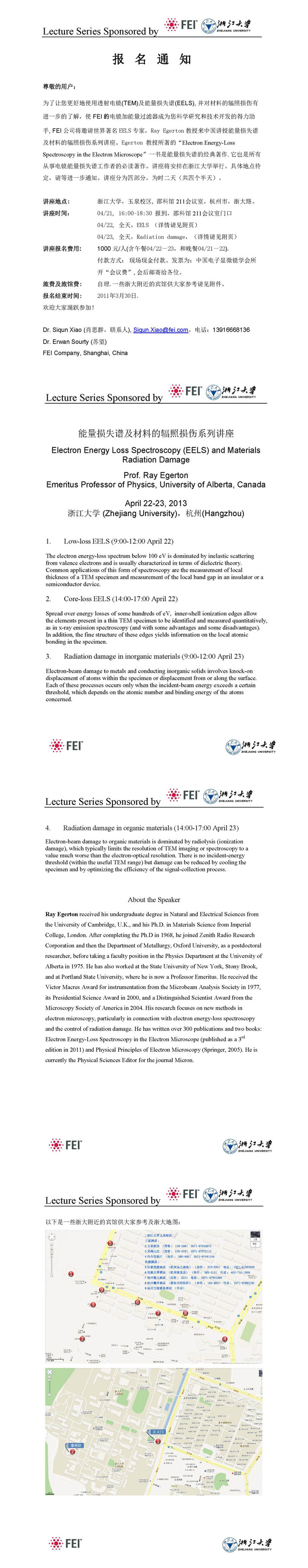 FEI公司能量損失譜及材料的輻照損傷系列講座報名通知
