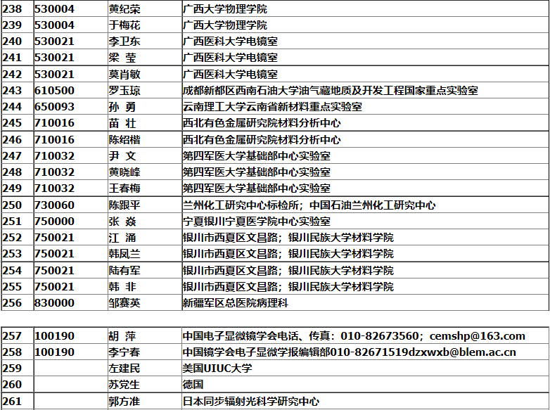 銀川市2008年中國(guó)電子顯微鏡學(xué)會(huì)會(huì)議名單