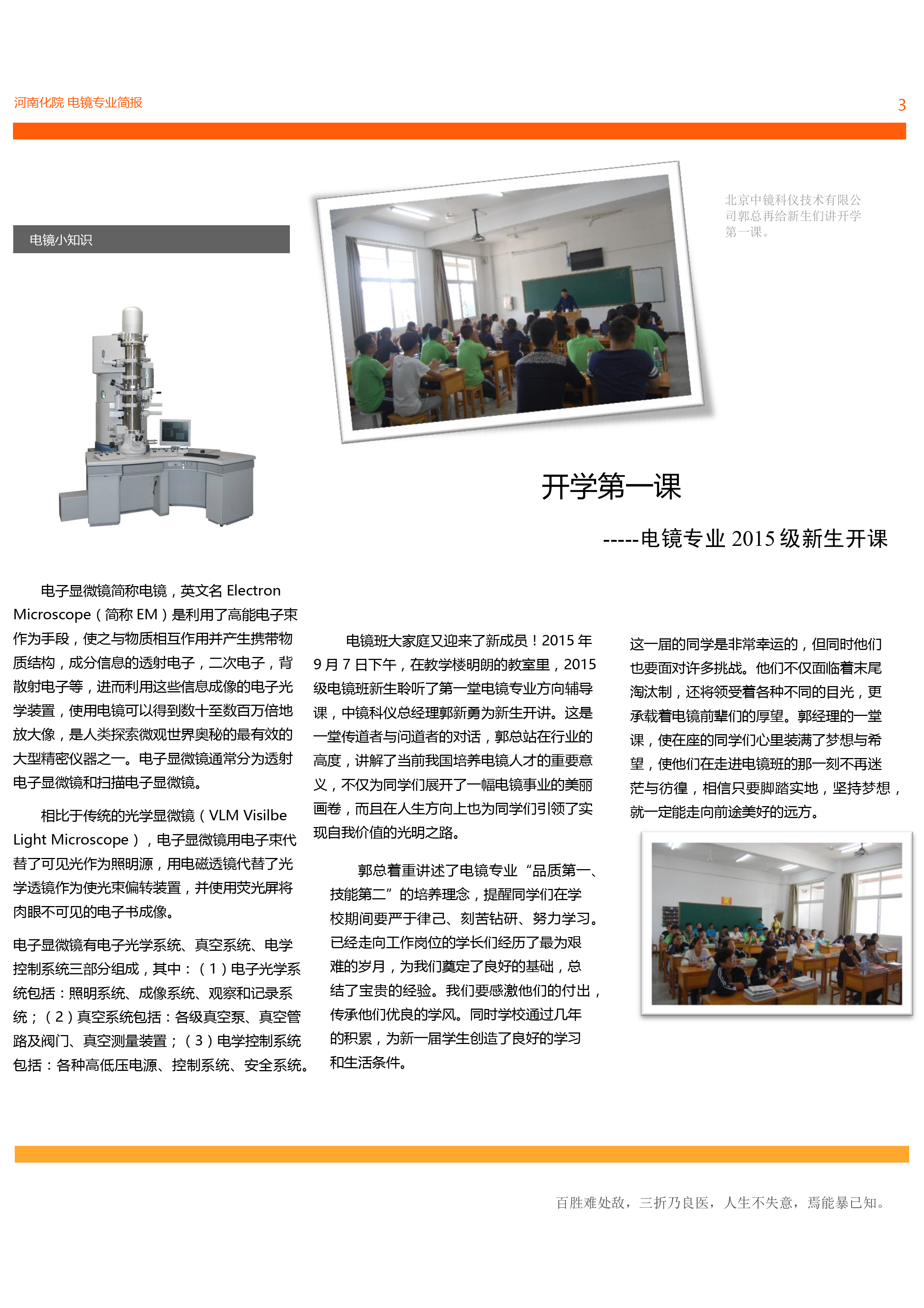 中鏡科儀與河南化工技師學院校企合作電鏡專業(yè)簡報2015年10月第一期