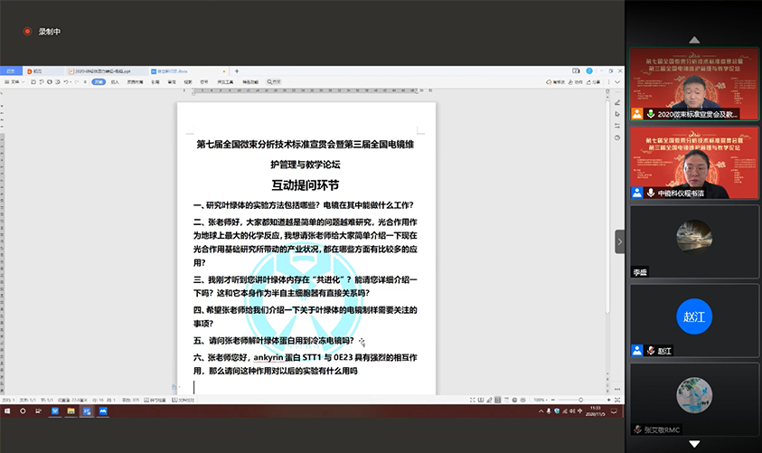 秋霜造就菊城花,不盡風(fēng)流寫晚霞。在這菊花飄香的季節(jié),第七屆全國(guó)微束分析技術(shù)標(biāo)準(zhǔn)宣貫會(huì)暨第三屆全國(guó)電鏡維護(hù)管理與教學(xué)論壇正式拉開了序幕。 大會(huì)開幕式由中鏡科儀集團(tuán)市場(chǎng)中心程書潔經(jīng)理主持,全國(guó)微束分析標(biāo)準(zhǔn)化技術(shù)委員會(huì)主任趙江、河南大學(xué)校長(zhǎng)辦公室主任方蒙、開封市科學(xué)技術(shù)局副局長(zhǎng)劉偉,分別代表主辦單位、承辦單位、當(dāng)?shù)卣罗o,在當(dāng)前形勢(shì)下,對(duì)此次會(huì)議采取線上舉辦表示贊賞和支持,對(duì)本次會(huì)議及科研行業(yè)發(fā)展和人才培養(yǎng)等提出了更高的期許,希望這個(gè)論壇能夠長(zhǎng)期開辦下去,把我國(guó)的科學(xué)和技術(shù)不斷深化融合,標(biāo)準(zhǔn)化思想和科學(xué)普及不斷深入人心,為社會(huì)經(jīng)濟(jì)發(fā)展做出貢獻(xiàn)。 全國(guó)微束分析標(biāo)準(zhǔn)化技術(shù)委員會(huì)主任趙江 河南大學(xué)校長(zhǎng)辦公室主任方蒙 開封市科學(xué)技術(shù)局副局長(zhǎng)劉偉 本次大會(huì)由全國(guó)微束分析標(biāo)準(zhǔn)化技術(shù)委員會(huì)、中國(guó)電子顯微鏡學(xué)會(huì)電鏡技術(shù)普及教育委員會(huì)、河南省分析測(cè)試協(xié)會(huì)電鏡專業(yè)委員會(huì)主辦,河南大學(xué)、河南化工技師學(xué)院、開封市科學(xué)技術(shù)局承辦。會(huì)議為期三天,共安排了14場(chǎng)不同專業(yè)方向的報(bào)告及“科研實(shí)驗(yàn)室管理”“微束分析標(biāo)準(zhǔn)化宣貫”兩場(chǎng)圓桌論壇。來(lái)自中國(guó)科學(xué)院、北京大學(xué)、武漢大學(xué)、河南大學(xué)等業(yè)內(nèi)專家、行業(yè)領(lǐng)軍人物以及電鏡專業(yè)的學(xué)生,將從“微束分析技術(shù)標(biāo)準(zhǔn)化應(yīng)用”、“電鏡維護(hù)及實(shí)驗(yàn)室管理”、“電鏡教育教學(xué)及培訓(xùn)”和“大型儀器開放共享”等方面進(jìn)行報(bào)告與研討。旨在用嚴(yán)謹(jǐn)?shù)目茖W(xué)思想和開放的創(chuàng)新精神,宣貫微束分析技術(shù)標(biāo)準(zhǔn),發(fā)展電鏡維護(hù)管理技術(shù),促進(jìn)電鏡技術(shù)人才培養(yǎng),推動(dòng)電鏡科研領(lǐng)域的進(jìn)步與發(fā)展,為實(shí)現(xiàn)中華民族偉大復(fù)興而努力。 會(huì)議現(xiàn)場(chǎng) 趙江研究員《漫談國(guó)際標(biāo)準(zhǔn)制定》 張立新教授《葉綠體蛋白轉(zhuǎn)運(yùn)和功能調(diào)控》 宋敬東副研究員《Morphogenesis and cytopathic effect of SARS-CoV-2 infection in human airway epithelial cells》 張躍飛教授《掃描電鏡中幾種原位分析測(cè)功能的開發(fā)與應(yīng)用》 王建波教授《氧化物結(jié)構(gòu)演化過(guò)程的原位電鏡研究》 本日的報(bào)告內(nèi)容涵蓋了國(guó)際標(biāo)準(zhǔn)、生命科學(xué)、疾病控制、測(cè)試技術(shù)等,這些報(bào)告不單單使參會(huì)者學(xué)習(xí)到了各個(gè)研究領(lǐng)域的最新成果,更是深刻感受到微束分析技術(shù)和電鏡技術(shù)的快速發(fā)展,也讓大家學(xué)習(xí)了嘉賓在專業(yè)上不斷研究、探索的科研精神。 會(huì)議現(xiàn)場(chǎng)問(wèn)答互動(dòng) 報(bào)告專家與在線聽(tīng)眾就專業(yè)技術(shù)、應(yīng)用方向、學(xué)術(shù)前沿等方面進(jìn)行了互答解疑,大家踴躍發(fā)言,氣氛熱烈。 行業(yè)老師積極參會(huì) 電鏡專業(yè)在校生集體參會(huì) 抽獎(jiǎng)現(xiàn)場(chǎng) 抽獎(jiǎng)環(huán)節(jié),共有23位參會(huì)者獲獎(jiǎng)。獎(jiǎng)品是電鏡專業(yè)相關(guān)書籍和微束分析標(biāo)準(zhǔn),“送書籍、送知識(shí)”也是本會(huì)議的一大特色。