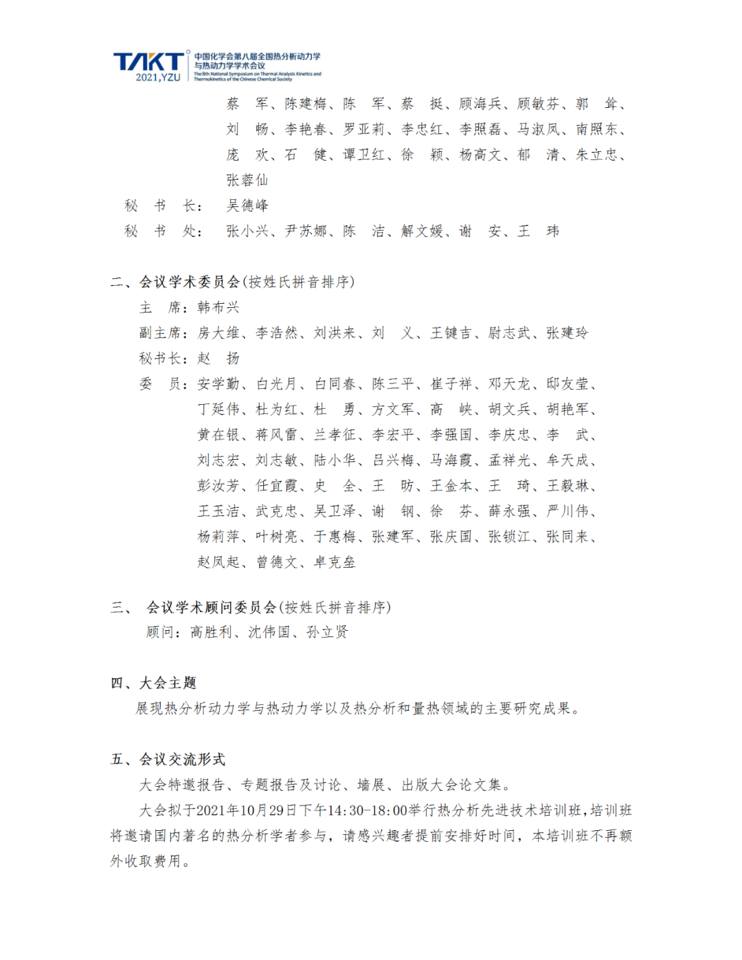 中國化學會第八屆全國熱分析動力學與熱動力學學術會議暨江蘇省第九屆熱分析學術研討會(第一輪通知)
