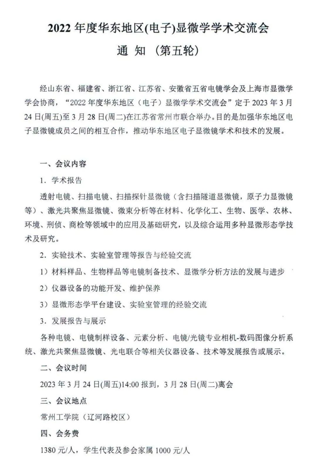 【行業會議】2022年度華東地區(電子)顯微學學術交流會通知(第五輪)