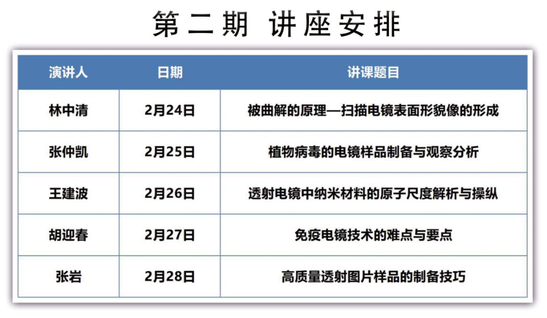 疫情當前,我們“停工不停學”。由中鏡科儀、河南化工技師學院實驗技術學院、我要測網共同發起的“線上公益課 助力防疫戰:抗疫公益講座”活動第二期圓滿結束,五節課程,初心依舊,內容“硬核”!第二期講座圍繞電鏡觀測、樣品制備、結果分析、拍攝技巧等話題共享電鏡智慧,為聽眾帶來了五場干貨十足的電鏡盛宴。本次直播目前報名參會人數近1000人次,會中大家積極交流,互動熱烈。 部分課程PPT下載: 鏈接: https://pan.baidu.com/s/1440vw28JnhU1VNBbdYzFIw 提取碼:yosa 復制鏈接后在百度網盤中打開,輸入提取碼即可下載
