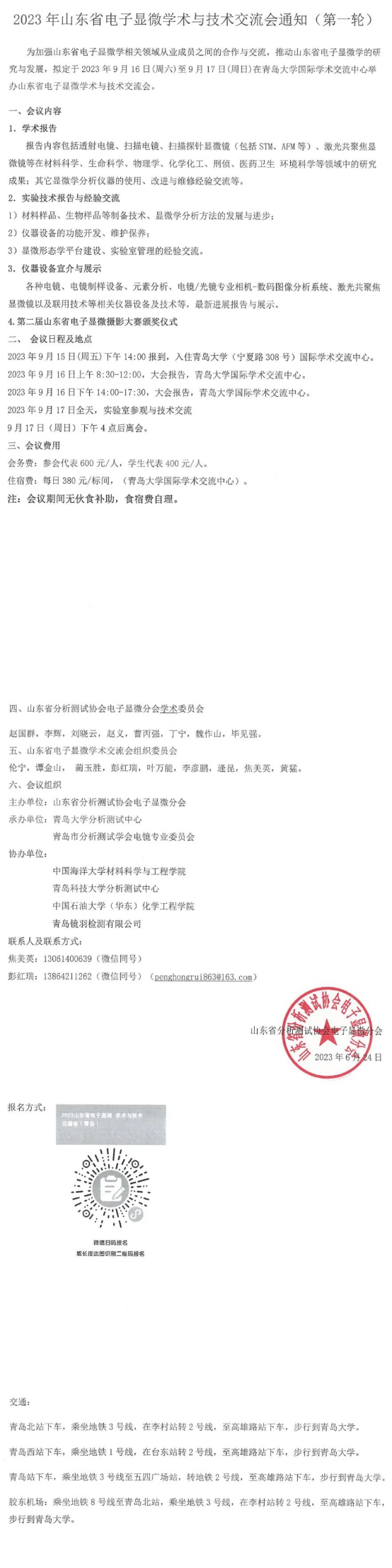 【行業(yè)會(huì)議】2023年山東省電子顯微學(xué)術(shù)與技術(shù)交流會(huì)通知(第一輪)