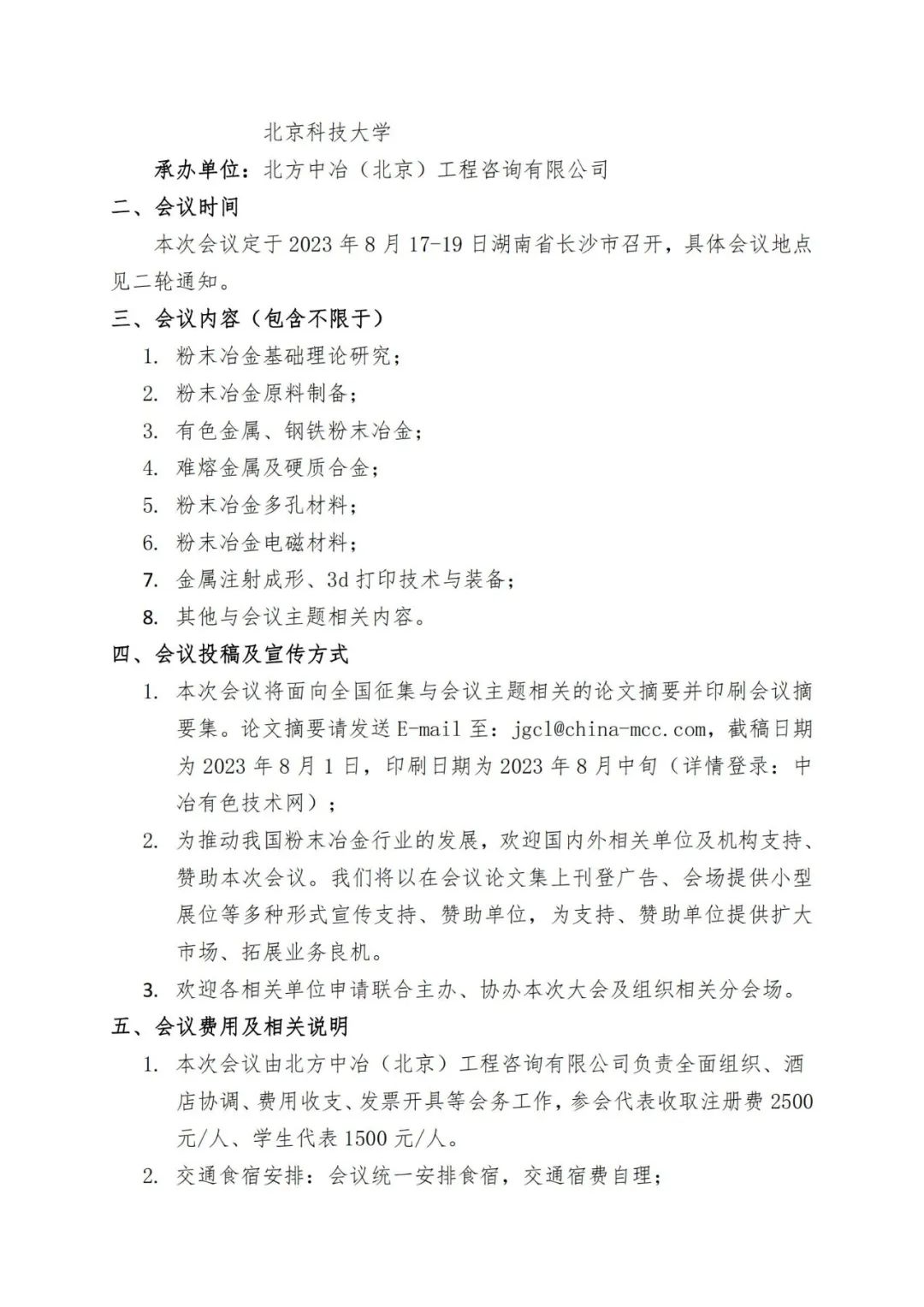 【行業(yè)會(huì)議】2023先進(jìn)粉末治金材料與技術(shù)交流會(huì)通知