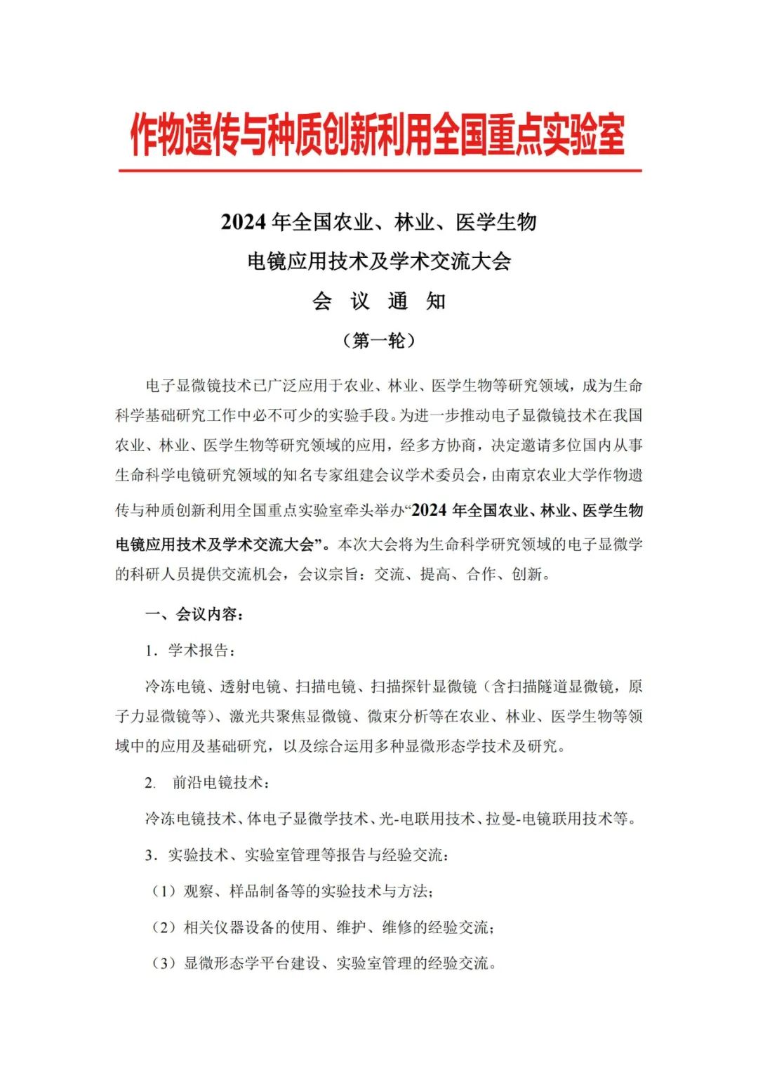 【行業(yè)會(huì)議】2024年全國(guó)農(nóng)業(yè)、林業(yè)、醫(yī)學(xué)生物電鏡應(yīng)用技術(shù)及學(xué)術(shù)交流大會(huì)會(huì)議通知(第一輪)