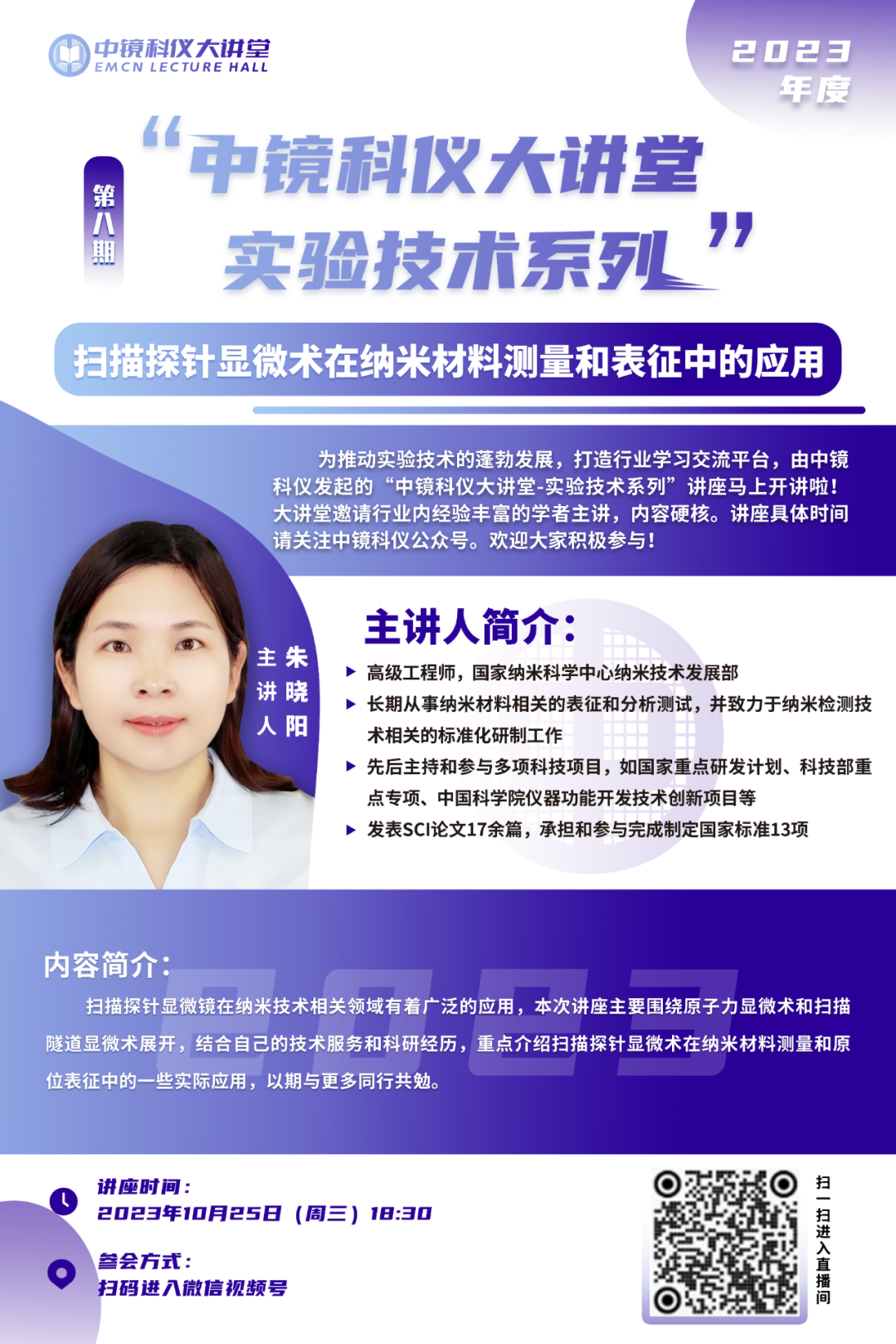 中鏡科儀大講堂-實驗技術系列視頻回放 第八期:掃描探針顯微術在納米材料測量和表征中的應用 為推動實驗技術的蓬勃發展,打造行業學習交流的平臺,由中鏡科儀發起的2023年“中鏡科儀大講堂”第八期-“實驗技術系列”講座圓滿結束! 在納米科技發展過程中,以掃描探針顯微術為核心的納米表征與測量技術起到了關鍵性作用。本期特邀國家納米科學中心朱曉陽為我們帶來了《掃描探針顯微術在納米材料測量和表征中的應用》的專題講座。講座圍繞掃描探針顯微術技術特點及支撐的科研成果、原位光電測量技術的應用進行深入的探討。內容詳實,深入淺出,精彩非凡! 現將本期講座回放發布,供大家學習,歡迎大家觀看!